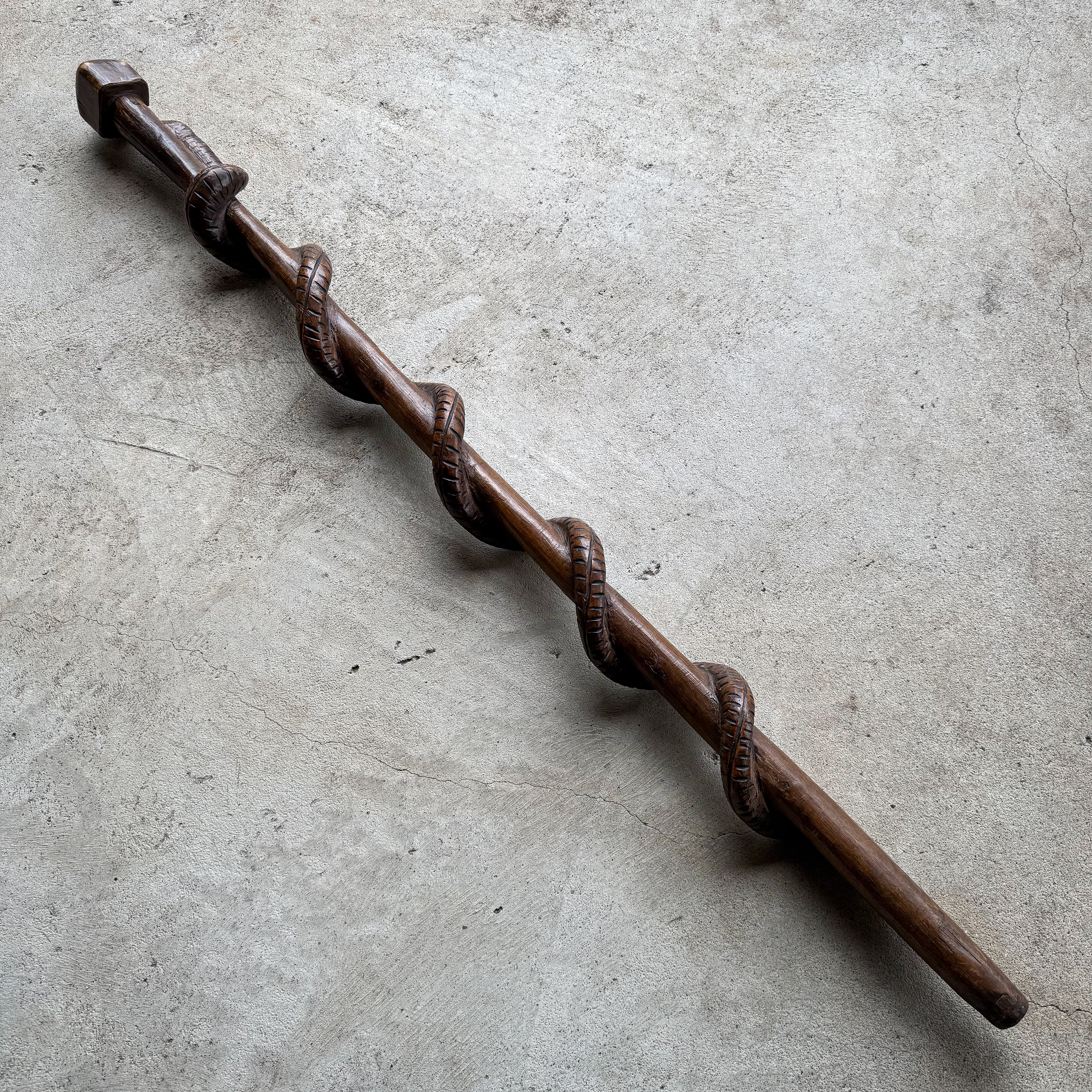 This unique walking stick was hand carved by a French soldier during the First World War. Coiling around the shaft is a finely carved snake, a powerful symbol often associated with vigilance, danger, and survival.