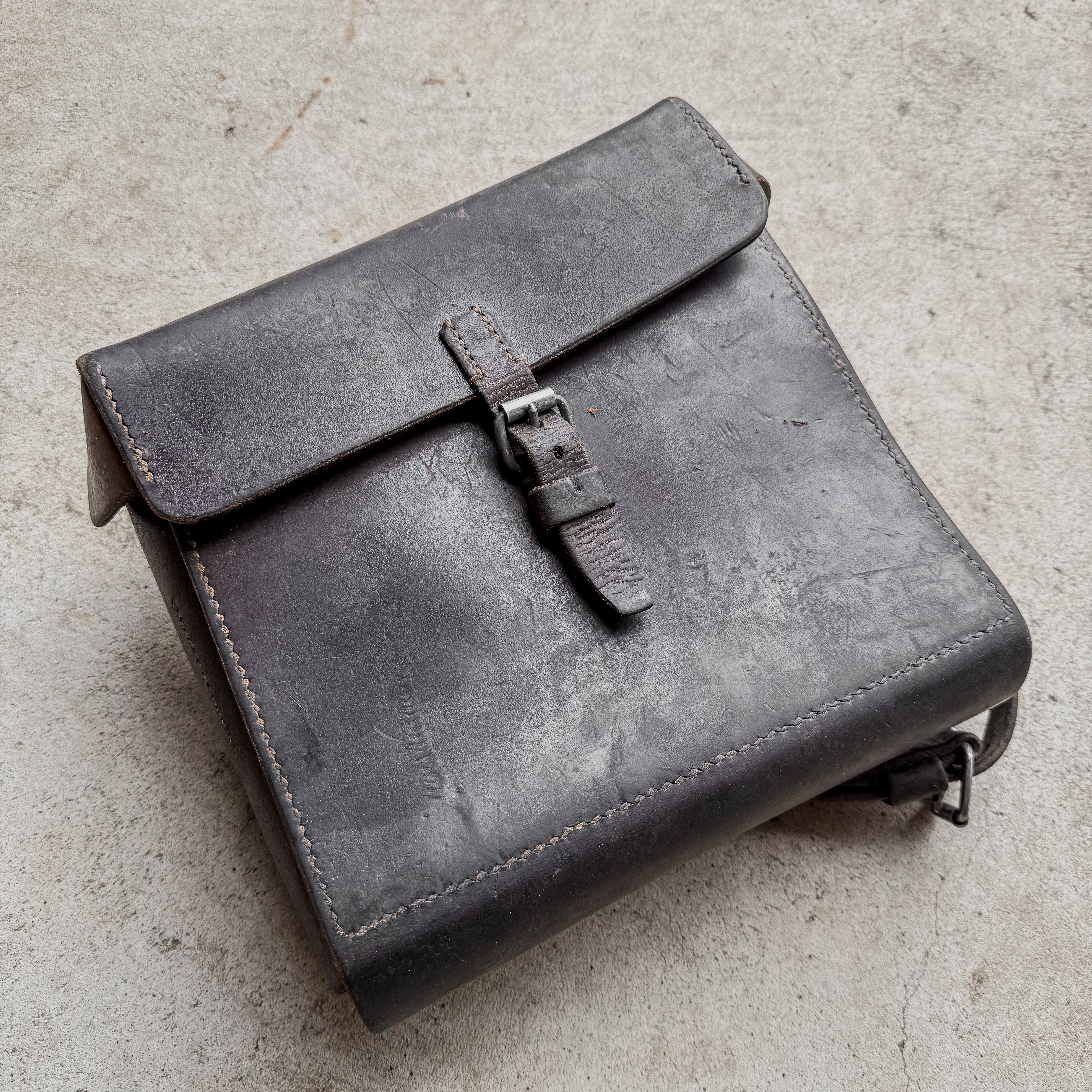 This antique tool bag was issued by the Swiss military in 1938. Its equiped with a clever design that can be folded open and fits all sorts of tools inside. Its a perfect example of Swiss craftmanship and is made of rugged saddle leather.