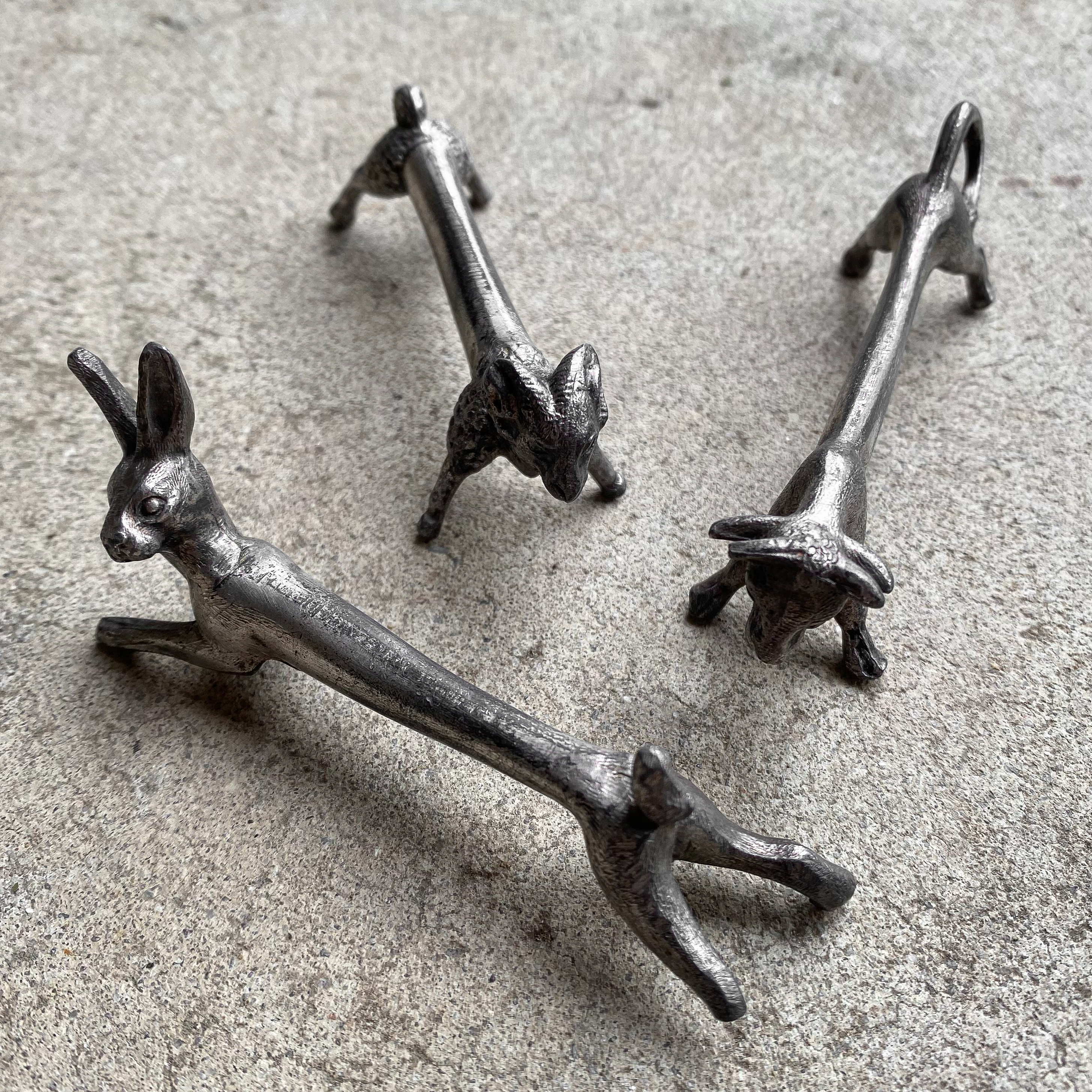 After a century, the knife rests remain in used but good vintage condition. Over the years, they have developed a lovely aged patina that only adds to their character. Some show small imperfections, such as minor losses to legs or ears, consistent with age and use.