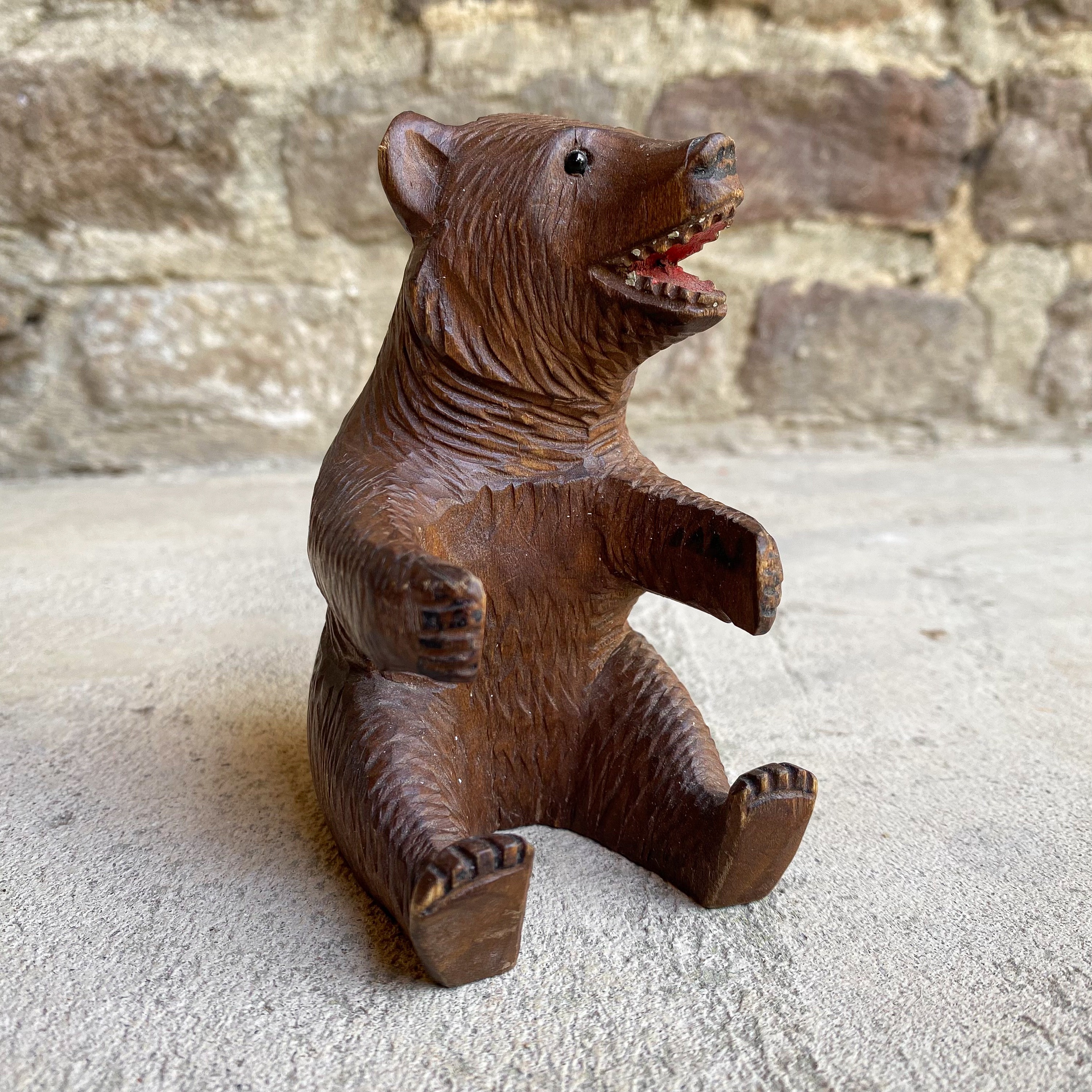 This bear figure was traditionally hand carved out of one single piece of wood in the Black forest area, in Germany and Switserland. It’s a fine example of the great craftsmanship the area got famous for and shows beautiful details.