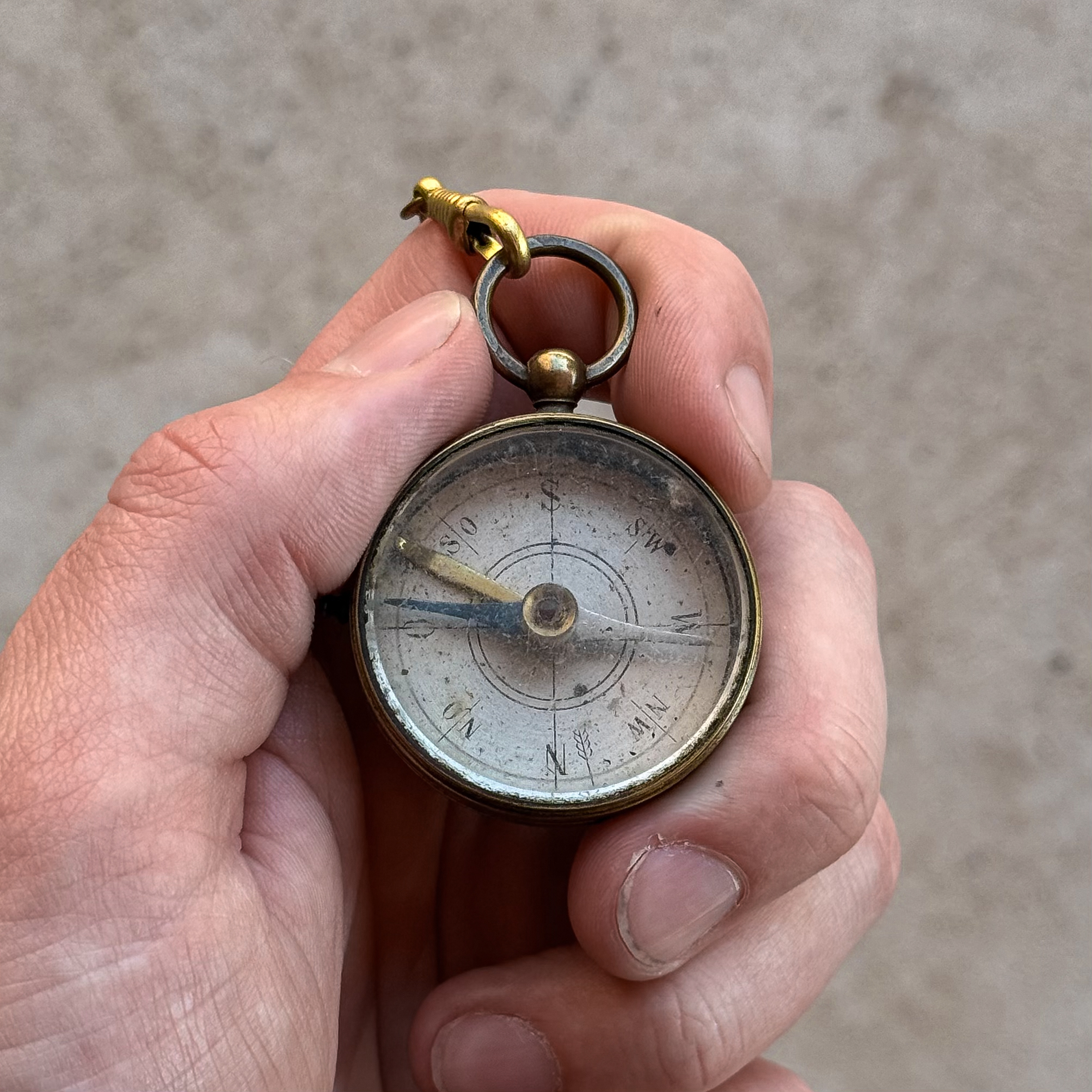 After more than a century, the compass remains in used condition, showing signs of wear. Over time, it has developed a rich patina that enhances its character and authentic vintage appeal.