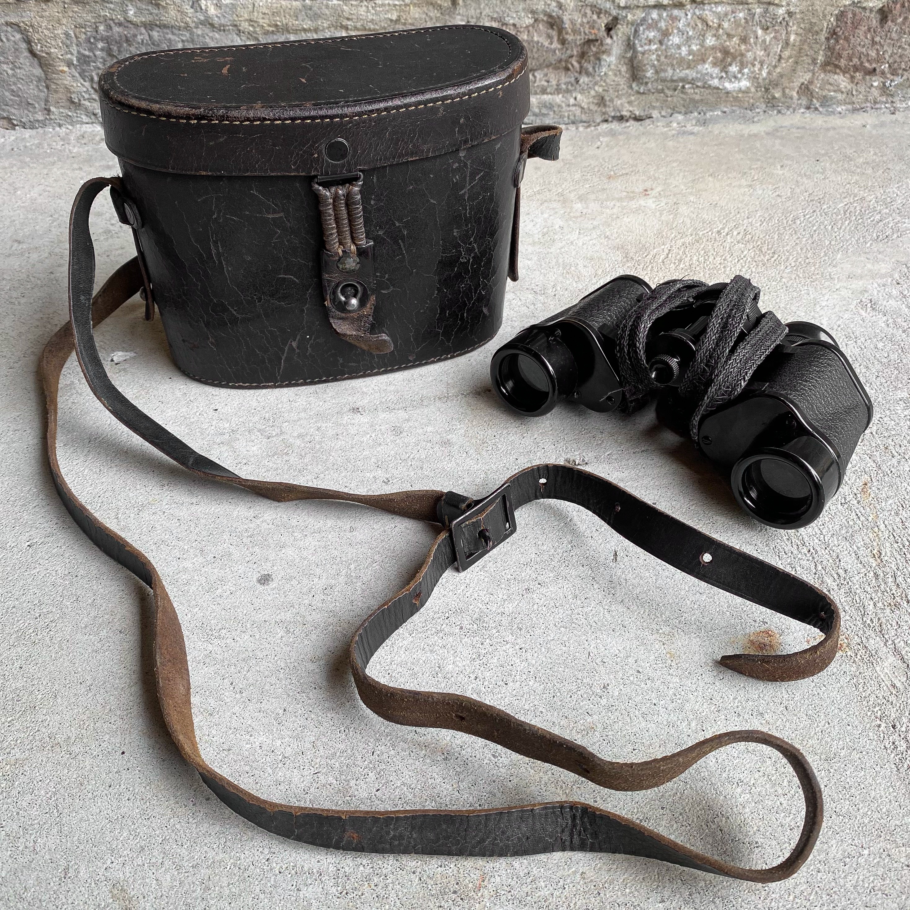 After more than a century, the binoculars are in used vintage condition. They show signs of age and use, including some wear to the leather covering and the loss of one small brass-plated screw at the front. Despite their age, the optics still provide a surprisingly clear view — though naturally, not to modern standards. Over time, the piece has acquired a beautiful aged patina, adding even more character to this historic item.