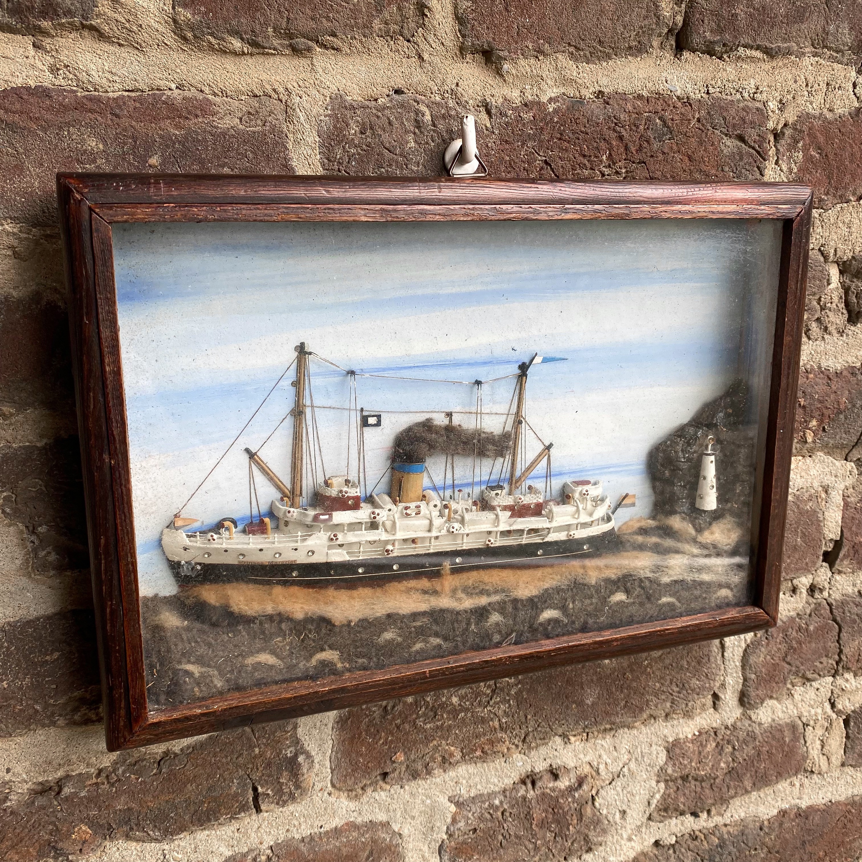 This unique frame shows a beautiful sea scene with a model of the Dutch ship “The Prinses Margriet”.