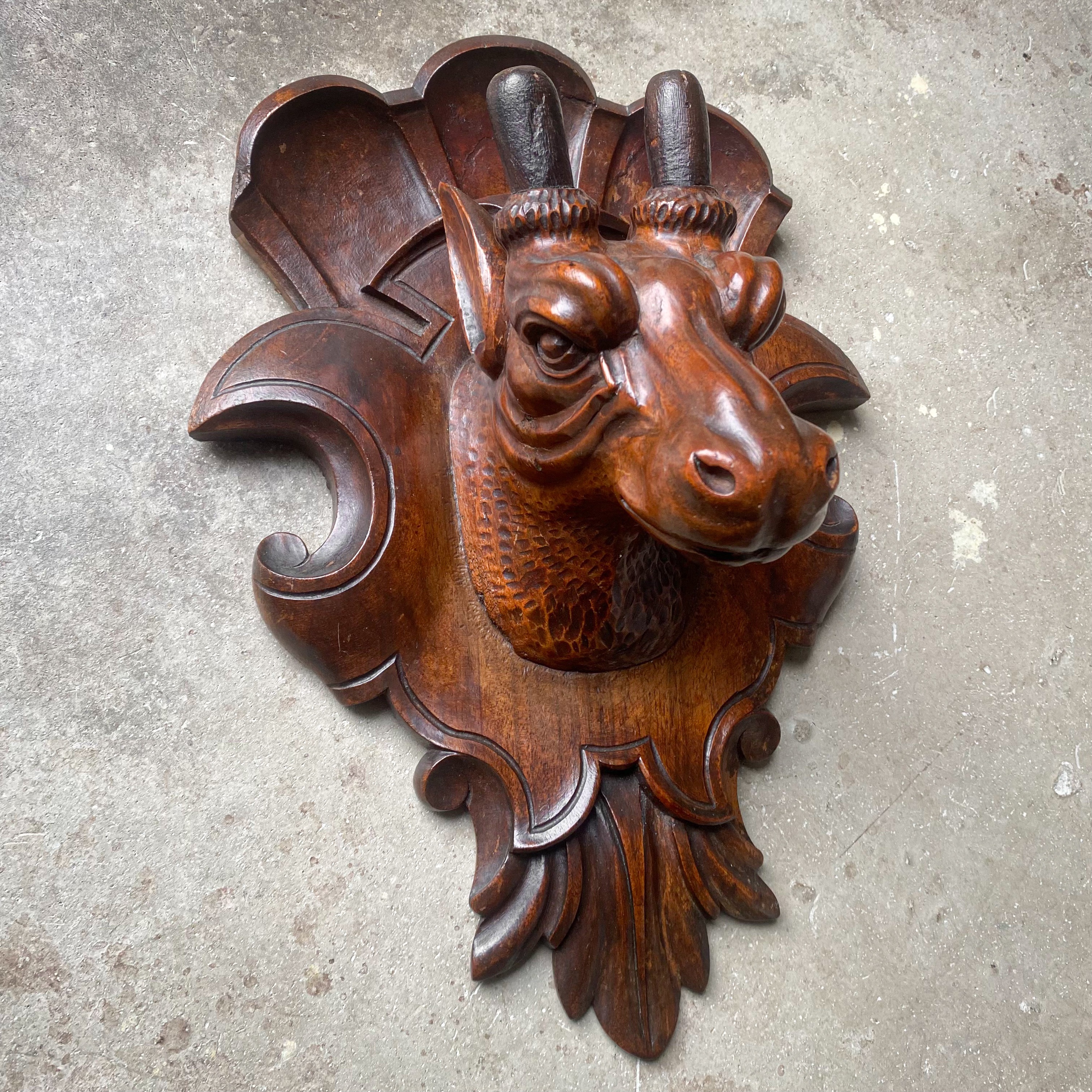This victorian deer head was hand carved in the 1800’s and shows elegant details and shapes.