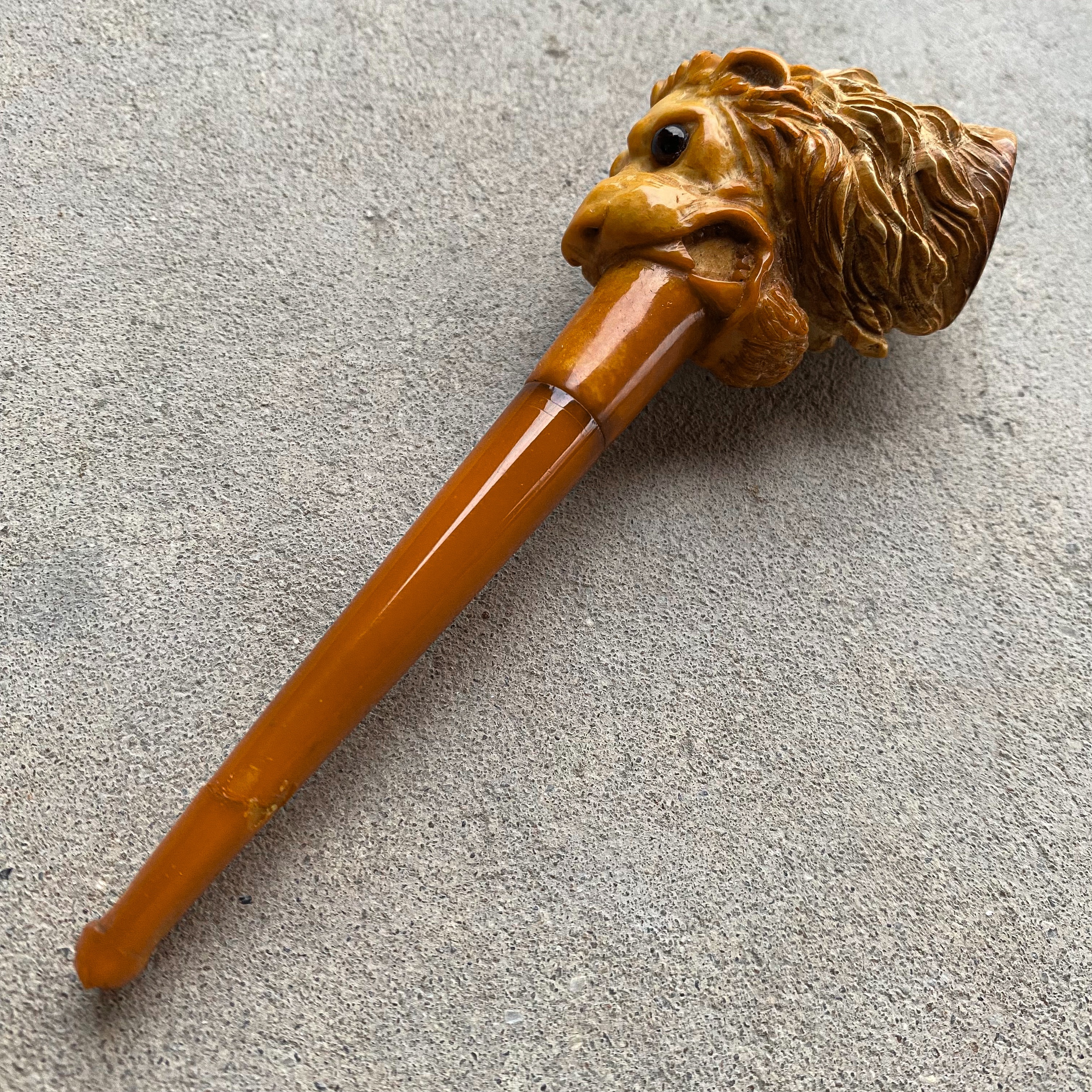 This unique tobacco pipe was carved out of meerschaum and is shaped like a detailed lion. It was made in the late 1800’s by the French manufacturer of Chacom Ecume Veritable in the village of Avignon.