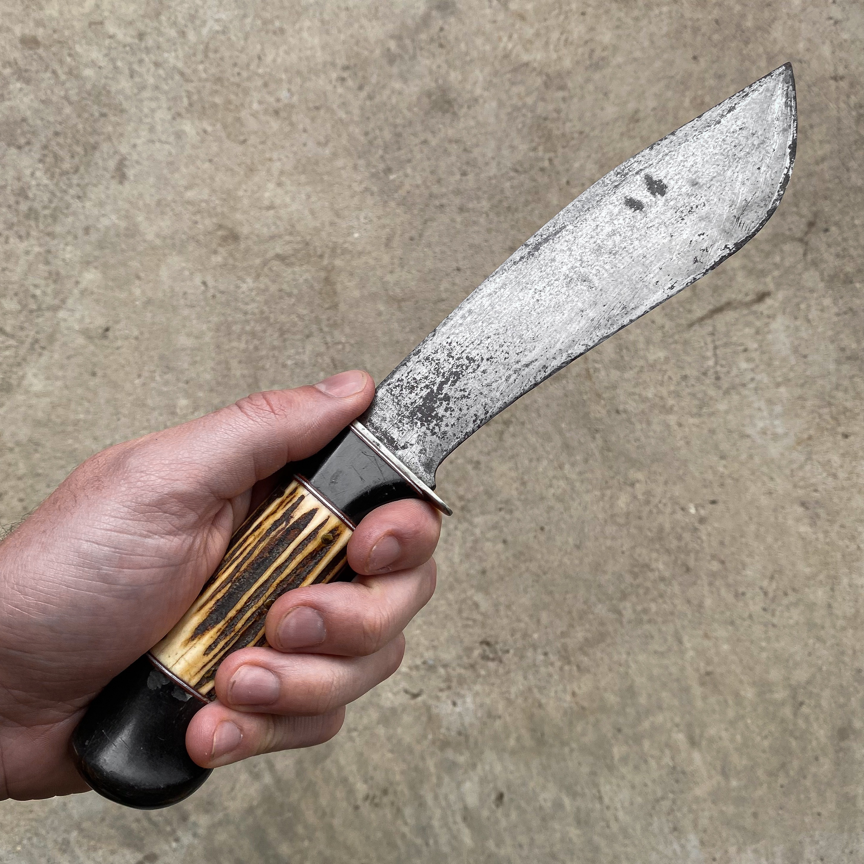 Vintage 50’s stag handle skinner knife with original leather sheath