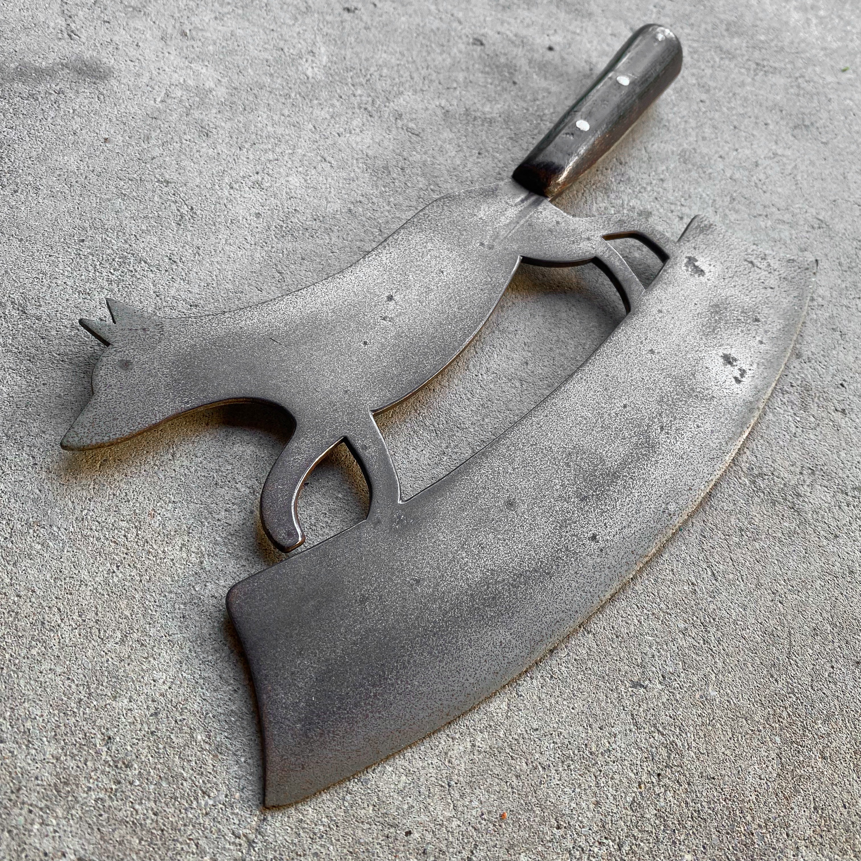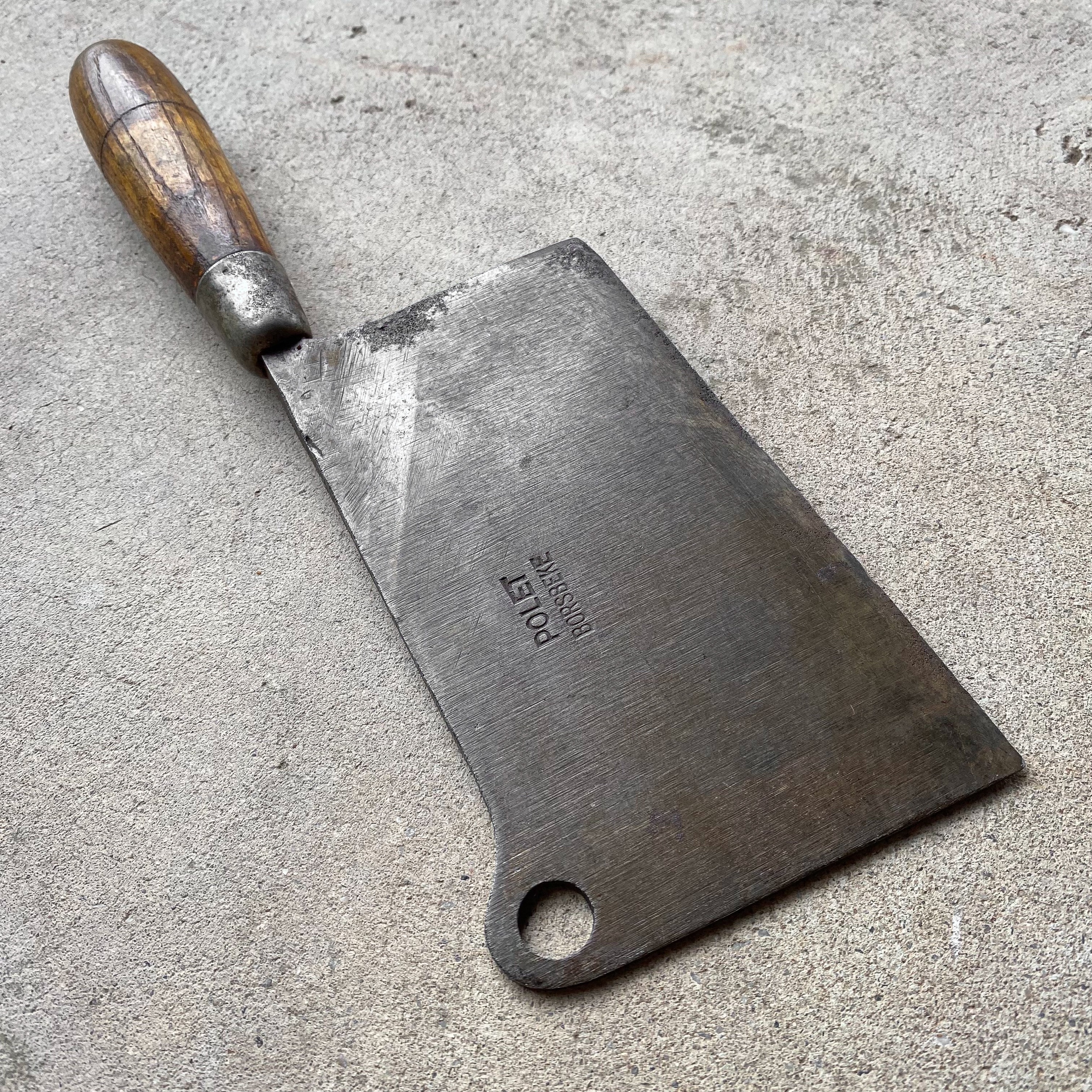 This cleaver was made in France and has been used for butchering and cutting meat by a butcher.