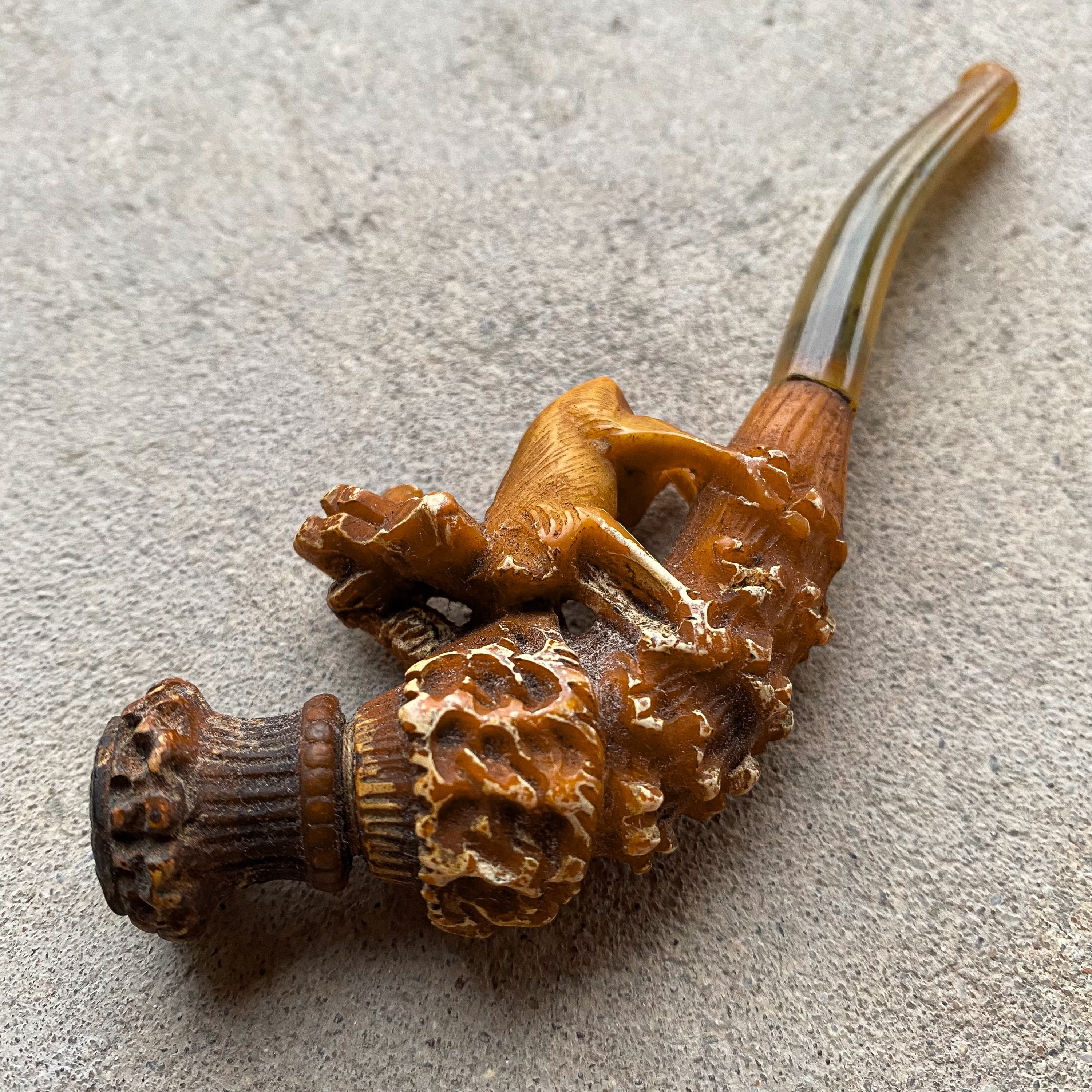 This unique tobacco pipe was carved out of meerschaum and is shaped like a detailed roe deer. It was made in the late 1800’s by the French manufacturer of Chacom Ecume Veritable in the village of Avignon.