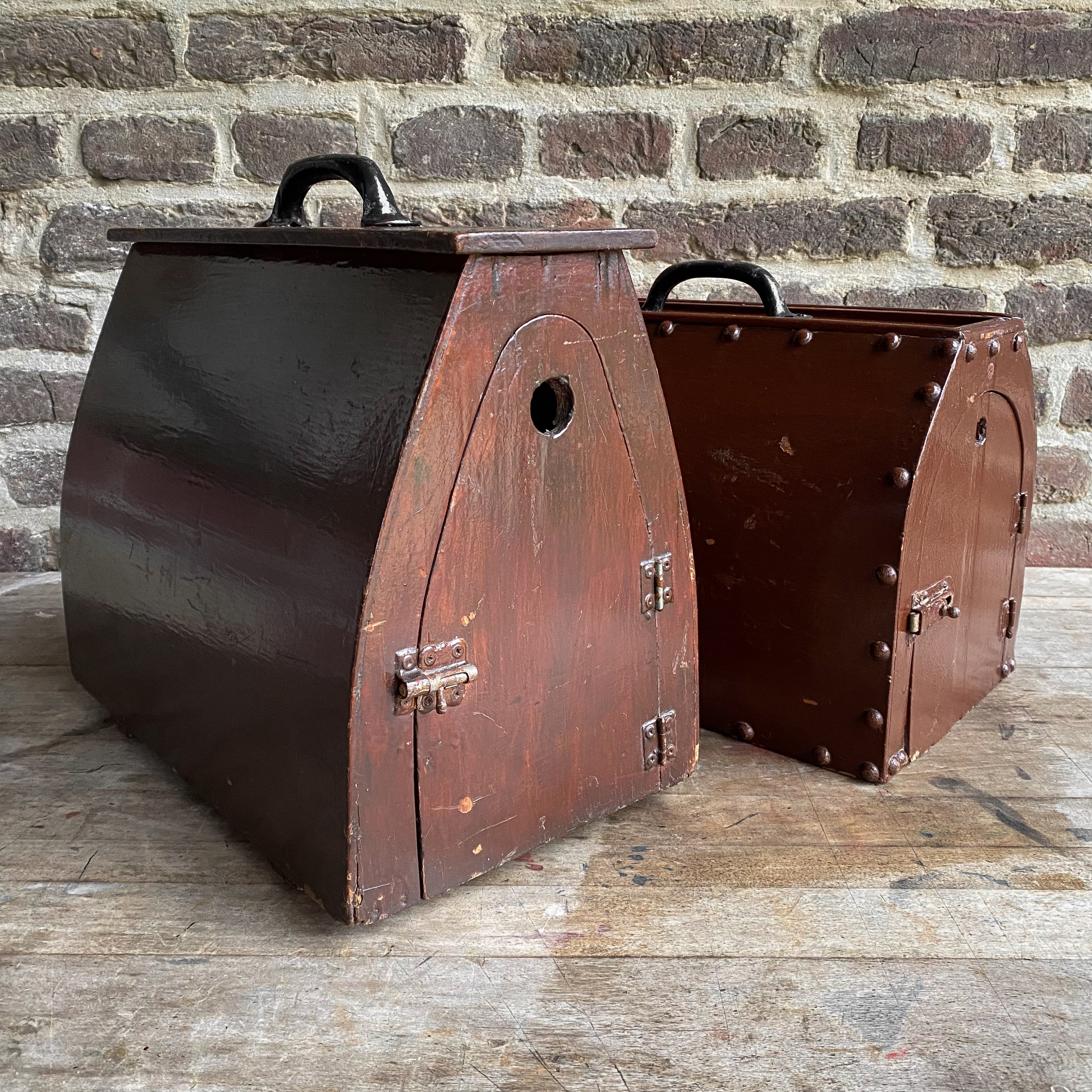 This wooden case was used to carry around roosters in the beginning of the 20th century
