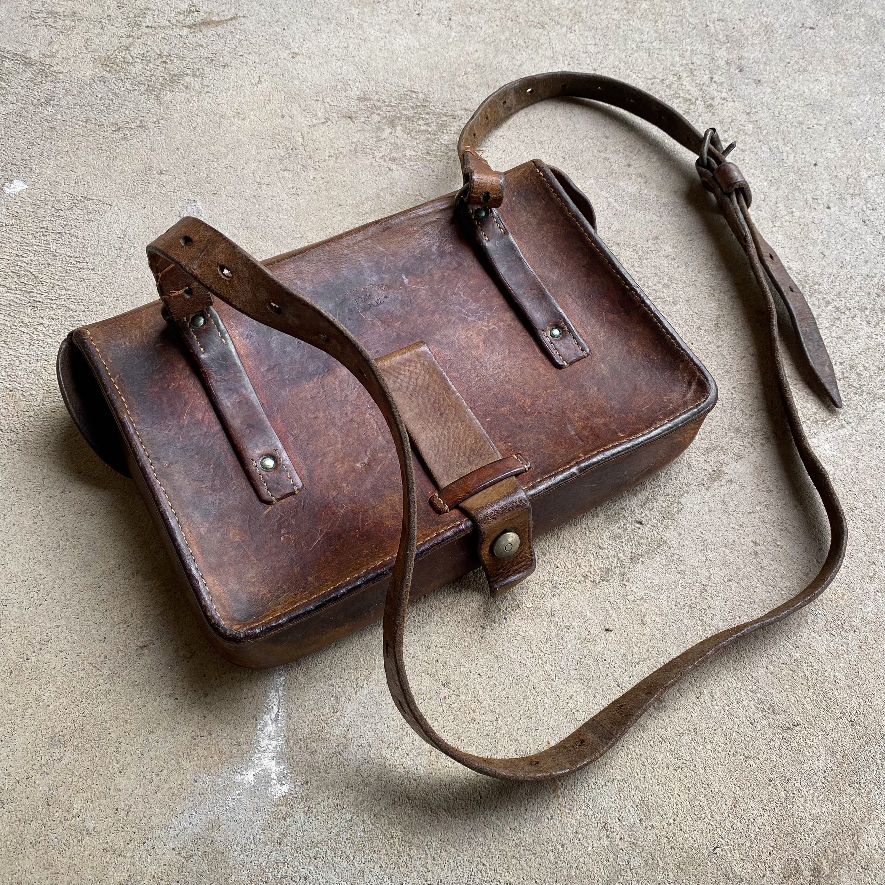 This vintage bag was issued by the swiss military and was used to carry around maps.
